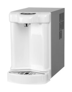 Maskinen levereras med tryckknappar samt om önskan finns – integrerat filter och kolsyretub. Perfekt för det lilla kontoret med höga krav som vill ha ett gott, kylt, stilla och kolsyrat vatten.