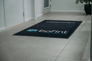 Vi erbjuder designtryck av logotyper och andra dekaler på mattorna för att dem ska vara skräddarsydda för just ert företag. Ni kan bland annat välja att ha organisationens kärnvärden, logotyp eller en leende smiley för ett extra trevligt bemötande.
